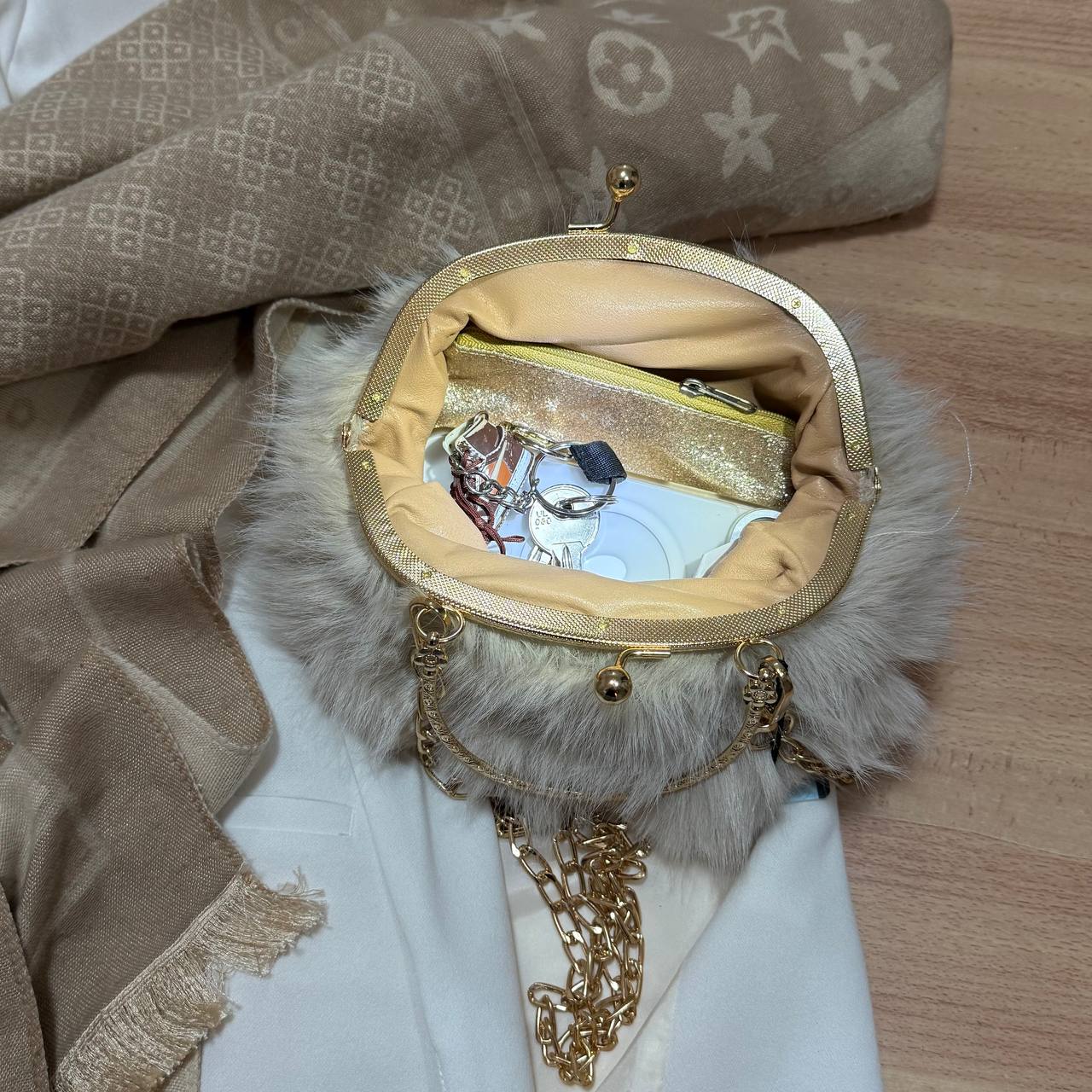 Questa pochette "PELOSETTA" elegante unisce stile e funzionalità con il suo esterno in pelo di alta qualità e l’interno capiente in similpelle. Dotata di manico e tracolla nei dettagli color GOLD, è perfetta per ogni occasione, dal quotidiano agli eventi speciali. Misura 22 cm di altezza, 19 cm di larghezza e 10 cm di profondità, offrendo spazio senza rinunciare alla comodità. Disponibile in 8 splendide colorazioni, è l’accessorio ideale per completare con classe ogni tuo outfit.